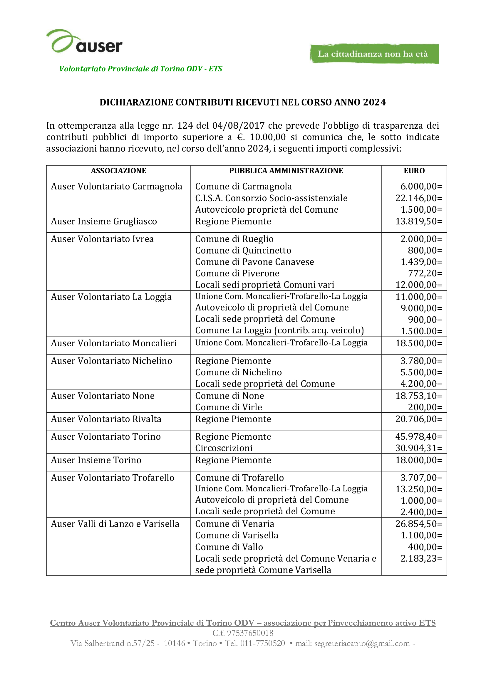 Dichiarazione Contributi ricevuti nel corso anno 2024